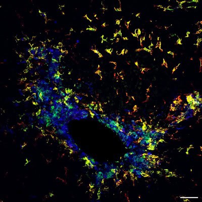 “To determine what these populations do in repair, we made use of different animal models to selectively delete genes of interest from the LAMs, LAM-like KCs, or both cells in the various liver injury contexts,” says Federico De Ponti, PhD student in the Scott lab and co-first author of the study. “This revealed that expression of the Trem2 gene is essential in at least one of these populations (LAMs or LAM-like KCs) for the efficient clearance of dying and injured liver cells”.